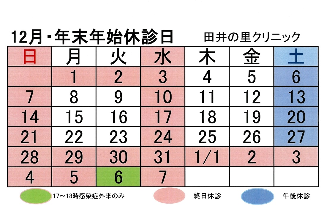 田井の里クリニック 12月の休診